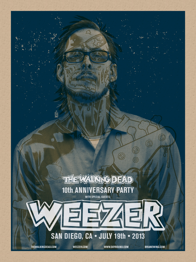 | 00:14, 18 June 2019 | Blue Scott walkingdead.jpg (file) | 770 KB | 2013 July Ltd edition poster (100 of each colorway, three colorways total) designed by Brian Ewing for the Walking Dead 10th Anniversary Party at SDCC. Scott, "Choking Blue" colorway, 18"x 24" | 1 | |