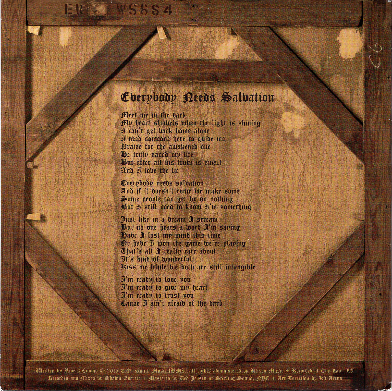 Back cover of the Everybody Needs Salvation single