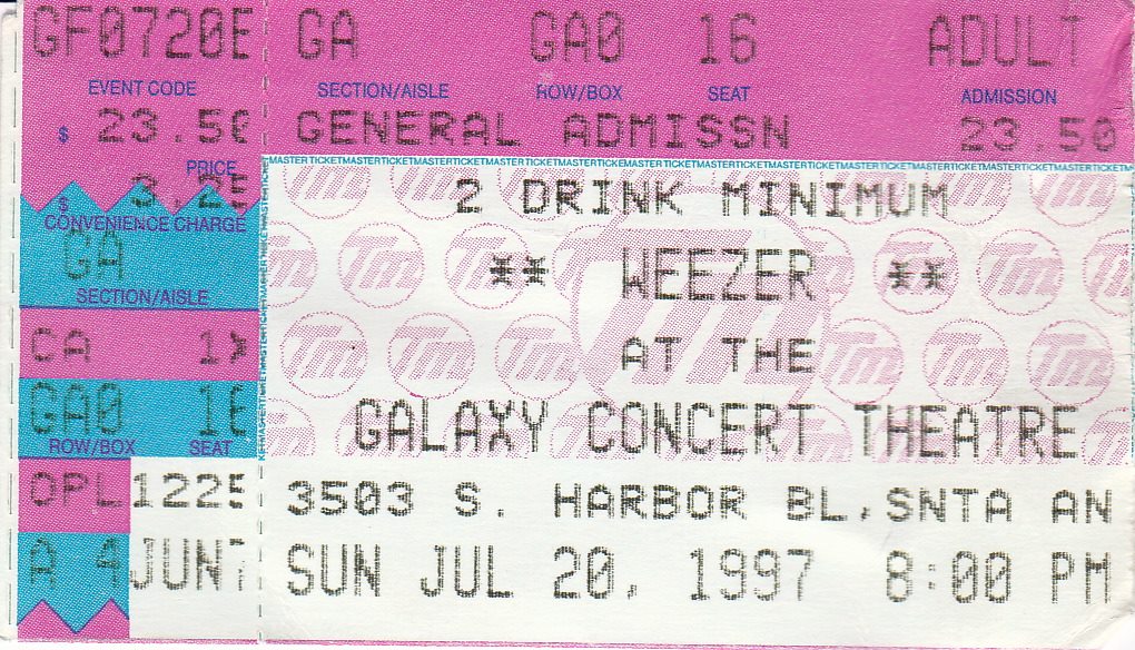 | Steve Avila | July 20 1997 | https://www.facebook.com/steven.avila.547/posts/pfbid02k2SWjcK9si1aSmXyp5eFReEkNx6LSvzkCBsXiQrZafpwc15EnN1rjKKsn7owHpHil | Ticket stubs, Weezer concert: 07/20/1997 |