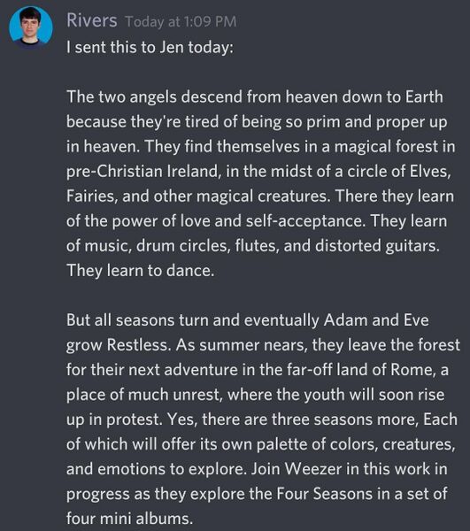 Rivers posts his proposed press release for SZNS, explaining the concept for the albums.
