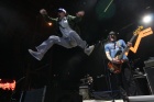 ...The day started with an early rise in Birmingham to get to the airport and fly to Dallas. Two of our bags went missing but were retrieved from the void due to the Sherlock Holmes-like detective work of our tour manager. Pizza Hut Park is where the Dallas FC (US soccer league) play, and its a massive arena out in what you might think is the middle of nowhere, but in fact is just another corner of the impossibly huge Dallas/Fort Worth metroplex. So we vanned it out here and got into the show day rituals, in anticipation of tonights 8 PM set. Prior to weezer Social Distortion is playing, not to mention Seether and Neon Trees. After Weezer, its Jane's Addiction, which should be pretty great. The last time weezer shared a bill with them was back in the UK at (i think) the 2002 Reading Festival.