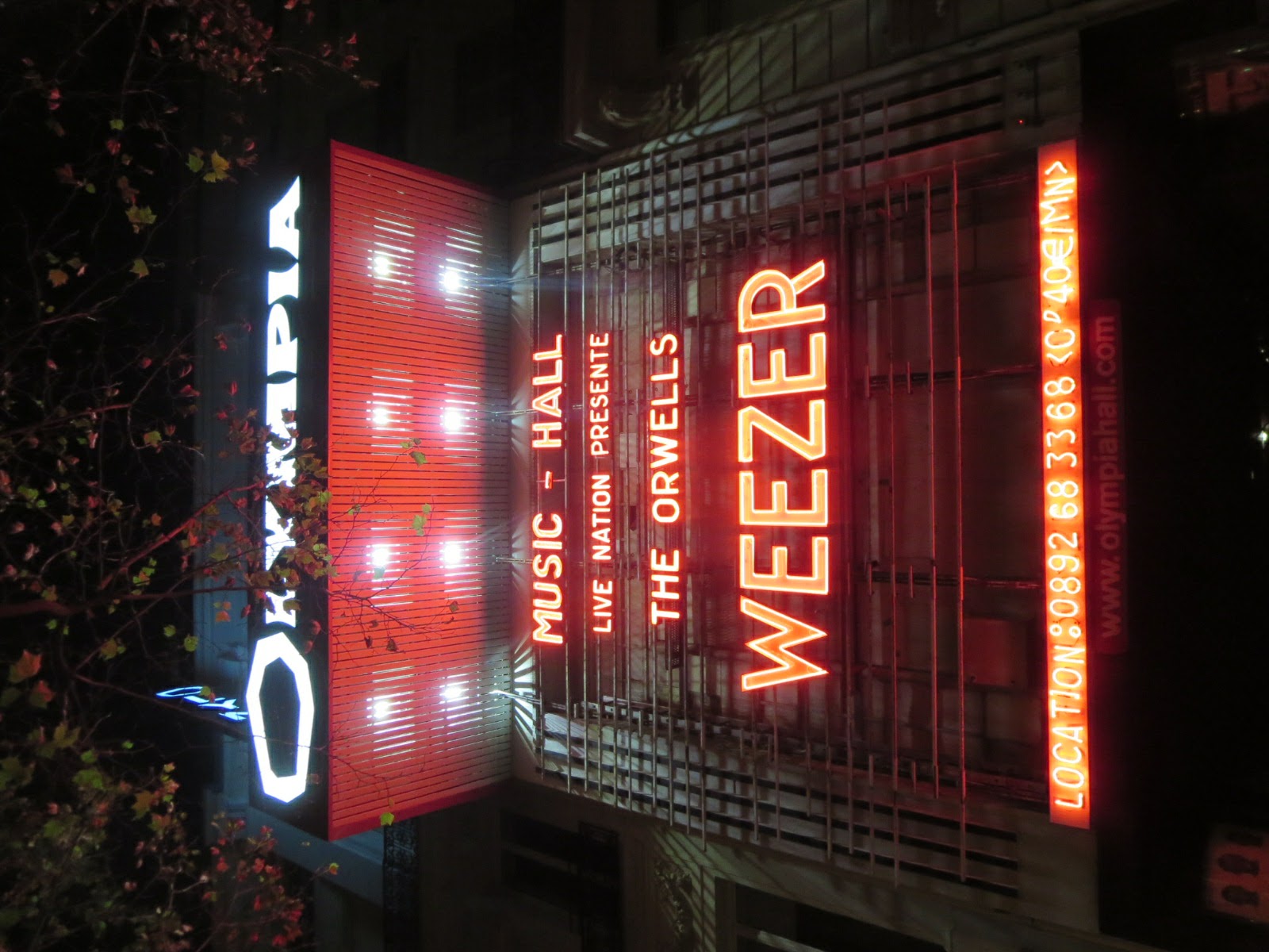 L'Olympia marquee lit up at night for Weezer October 19, 2017