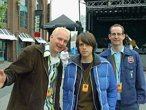Rivers Cuomo (middle) with Parry Gripp (L) and Steve Sherlock (R) of Nerf Herder in 1997 | |