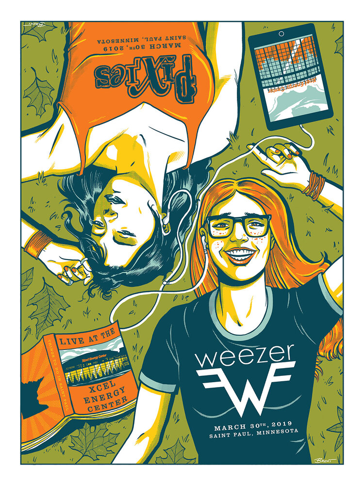 Poster by Brent Schoonover: https://www.brentschoonover.com/posters/weezer-pixies-xcel-energy-center-poster