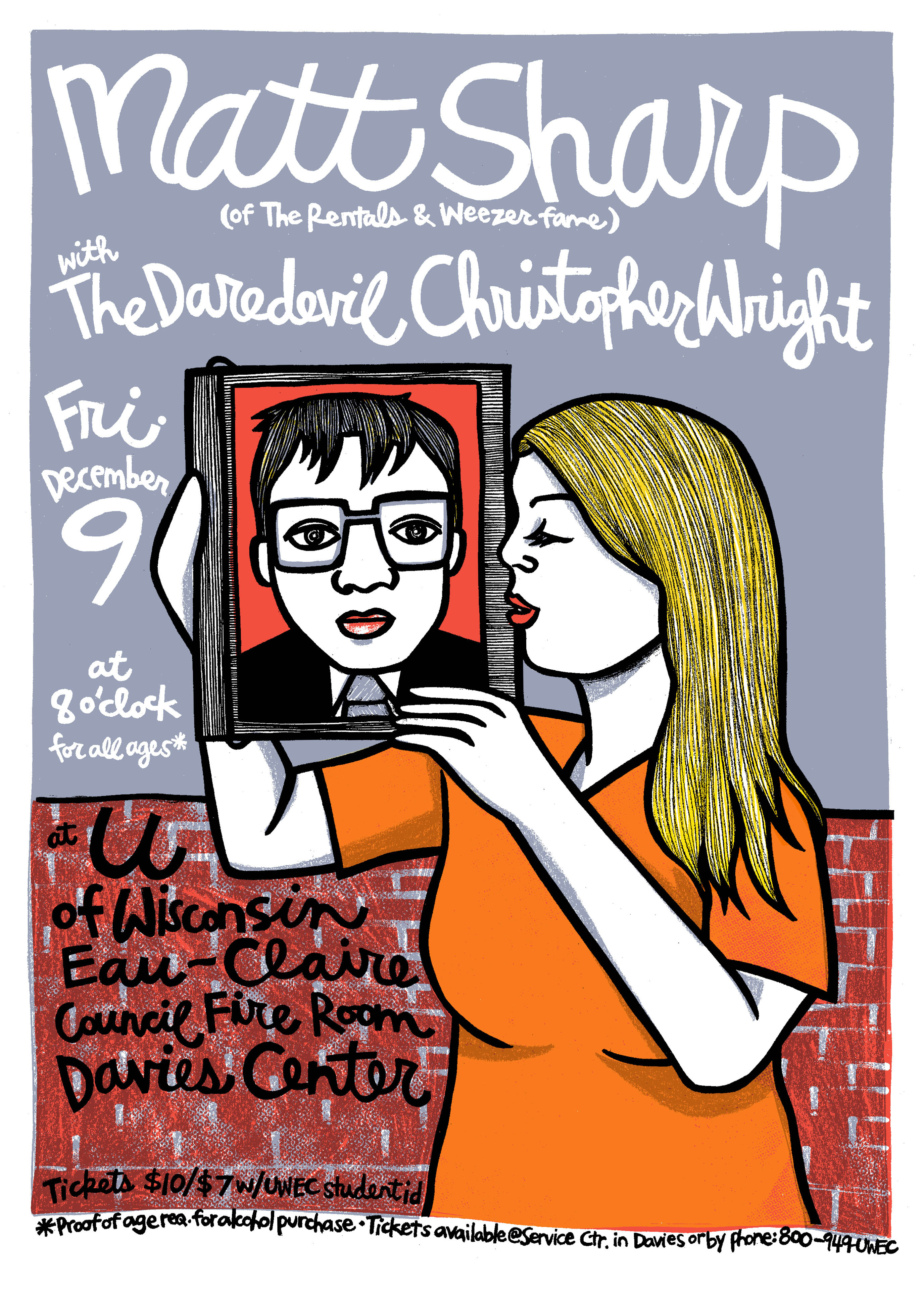 Poster for Matt Sharp concert (December 9, 2005) illustrated by Leia Bell