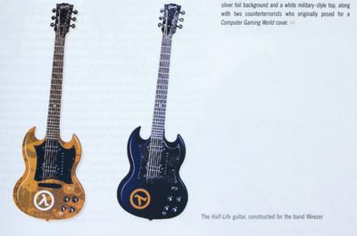 In 2004, a book titled Half-Life 2: Raising the Bar was released. The book contains a behind-the-scenes look at the production of Half-Life and Half-Life 2, as well as other Valve titles. A pre-release uncorrected proof exists of the book, which contains a large amount of information not present in the final release. In this uncorrected proof, an image can be found of two Half-Life themed guitars, with the following subtitle: