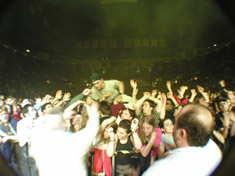 "...I was out buying an ozma t-shirt when the concert started. Ozma took the stage and rocked the house...I noticed that not a lot of people in the crowd liked ozma but me and my friend wore our shirts with pride. When they played the tetris song and battle scars, I could see the crowd was starting to get into it. Soon, their set was over and Saves The Day was up next. I'm not a big fan of them but i sat through a couple of songs. It was ok. Some catchy songs and some really dislikeable ones too. I left to get a soda and i came back to see that they were gone. Now it was time to prepare. I was very very excited. I ended up starting the wave with my pals and a group of guys behind us. Now this wave was going all around the venue and back to us. I even saw a bit of wave action happening on the floor. The lights soon grew dim. The house started to scream and the opening chords of island in the sun were played. But i remember the first thing Rivers said was, "Who's my bitch" or something along those lines. They later played "dope nose" and "keep fishin", that was a big shocker. That might have been the best "only in dreams" i have heard. Scott was doing these crazy stances with his bass and Brian was playing amazing. Pat's drumming was unbelieveable. Best playing yet. Rivers voice was incredible too. A lot of emotion was let out. The encore then came. There was another attempt at a wave but it failed. Weezer soon came on and played "buddy holly". I liked that a lot. Then "surfwax" was played. Pardon my potty mouth, but holy s--- did Rivers shred! He started messing around with the tuning of his strings. Scott's bass was left near the amp for feedback and Pat did a drum roll then left by throwing his arms in the air and waving to us. But Rivers just kept going. The guitar was making a very wavey type sound which died out just as the dimmed the lights to the big flying W. So all in all, it was a good show. Rating: 10 baby!" -Harrison