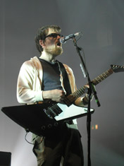 ...wild rock explosions! After the truncated Spanish shows, it was time for a return to the full size weez at the Manchester Apollo. This is the first of 5 shows with Remy Zero, but unfortunately Remy Zero's singer was suffering from laryngitis, so they were forced to do a drastically shortened set. Then the weez busted out with a fresh setlist and met an extremely stoked crowd. Earlier during the day phone interviews and photography were done for Pulse Magazine.