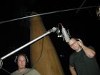 ...summer recording session, day 39. Rivers worked on various overdubs in the AM and then Rivers and Scott laid down new music over an existing drum track in an effort to re-work a song thats been feeling too stiff. Then the fun part: while Rivers sang the song's lead vocal in one room, Scott, Brian, Pat and I did the back up 'gang' vocals in another room. Then there was a short break after which we did handclaps on the song. Fun times. Will this stuff survive to the final product? Time will tell.