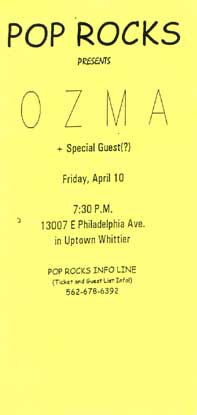 Ozma performed at Crystal Marquis in Whittier, California on April 10, 1998. This was the first of two events dubbed "Pop Rocks", the second being Ozma concert: 06/25/1998.