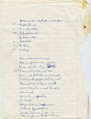 | 02:55, 28 September 2008 | The Answer Man lyric sheet.jpg (file) | 133 KB | Lyric sheet for The Answer Man (handwritten) | 1 | |